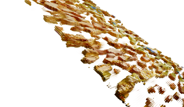Isometric view of a colorful platform with chipped edges and abstract paint