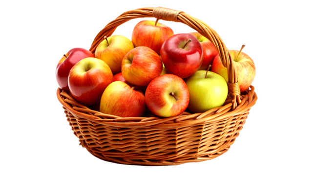"Rustic Woven Basket Filled with Crisp Green and Red Apples Ready for Market"
