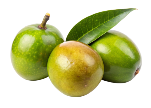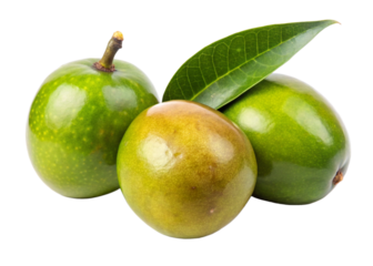 Colorful apples with leaves isolated on PNG transparent background.