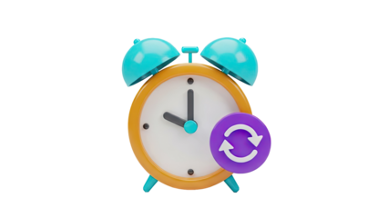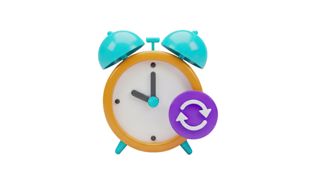 3D Alarm Clock with Refresh Icon on transparent background