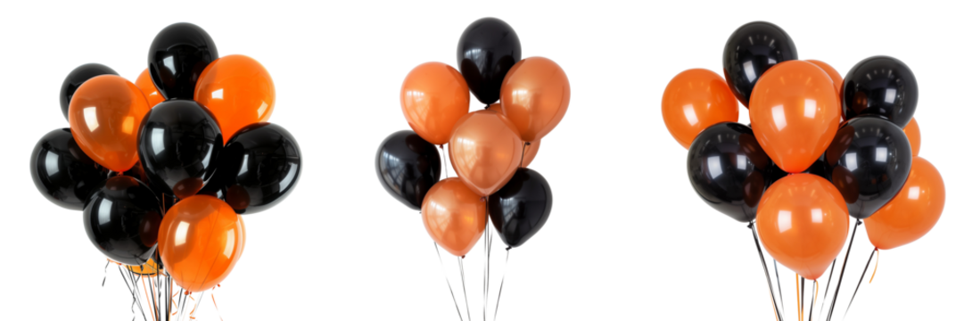 Set of orange and black balloons for Halloween party isolated on transparent background