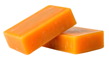 Two vibrant orange bars of handcrafted soap, perfect for a refreshing and invigorating cleansing experience.