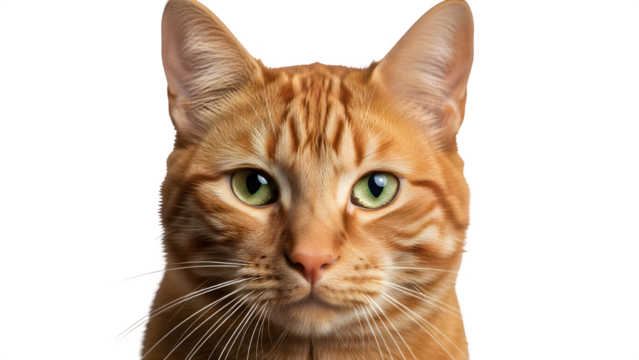 Orange tabby cat holding orange camera, isolated on transparency background, with playful and curious expression, perfect for pet photography or creative advertising concepts