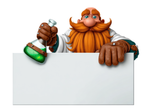 Cartoon dwarf with orange beard on transparent background