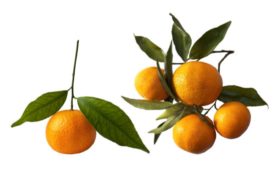 Dual Orange Branch Designs in Citrus Fruit Collection, isolated on transparent background.