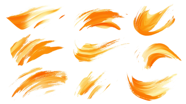 set of yellow orange dabbing brushstrokes isolated on transparent background