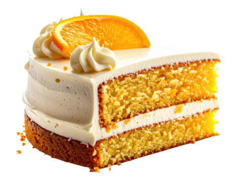 Orange cake slice with cream icing and orange slice decor