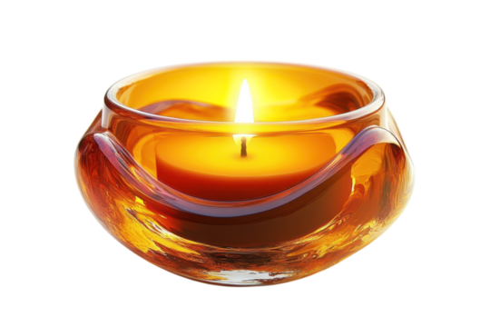 The warm glow of hope emanates from a lit candle in a decorative glass holder casting a spell on transparent background