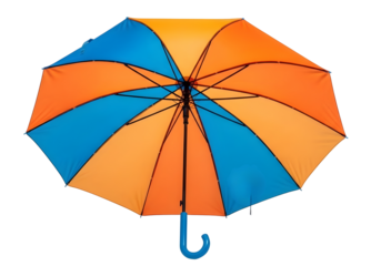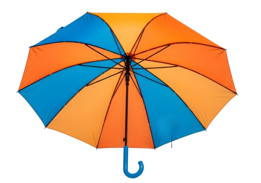 Vibrant orange and blue umbrella isolated on transparent background for outdoor use