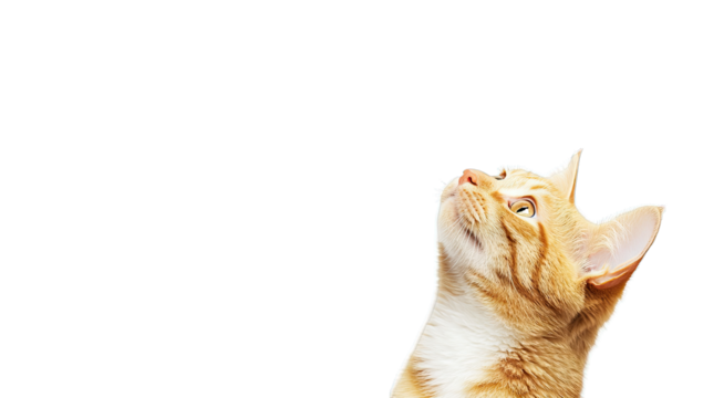 Orange cute cat with stripes isolated on white background. Funny fat cat smiling