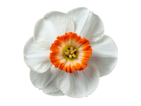 Delicate white flower with orange center close up macro shot, Isolated On White, Png Transparent