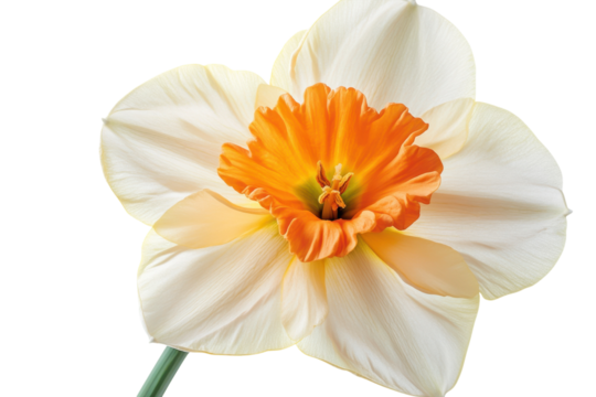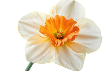 Delicate cream daffodil with vibrant orange center springtime bloom isolated on white background
