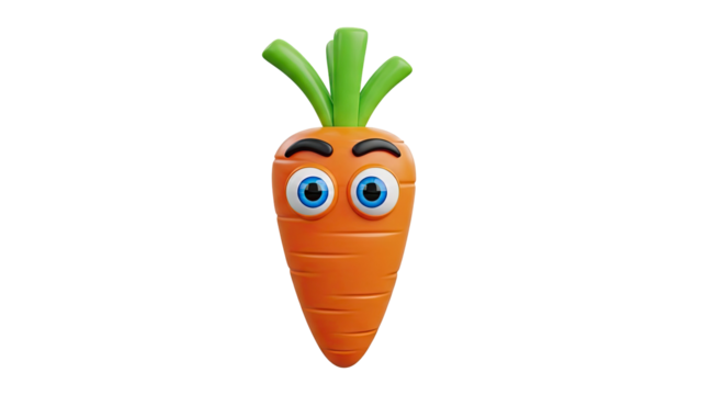 Playful cartoon carrot character smiling on transparent background