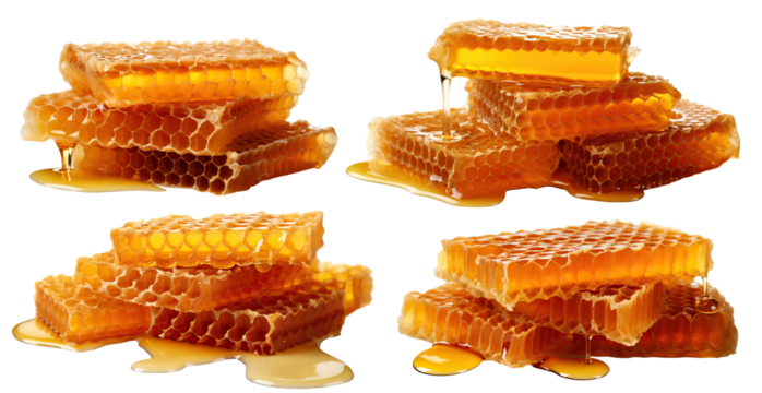 Set of stacks of sweet dripping honeycombs, cut out