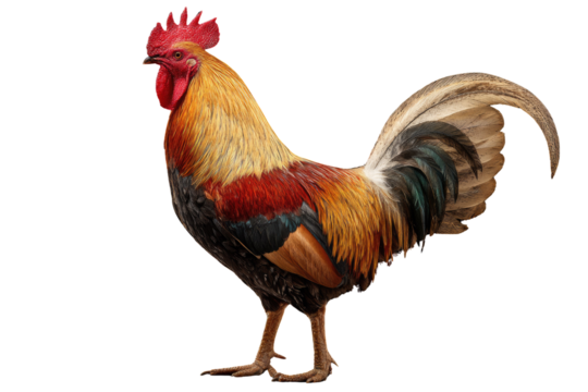 Vibrant rooster displaying iridescent plumage, a symbol of nature.