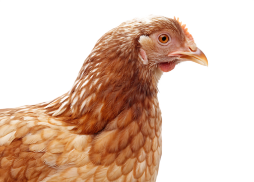 Brown hen head and feathers isolated on a transparent background