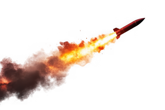 Thick explosion cloud with black and orange fire particles, isolated on transparent background