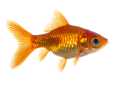 Close-up of a vibrant orange fish with detailed scales and large eye, isolated on a transparent background. Perfect for marine life or aquarium themes.