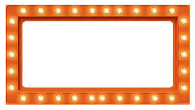 Rectangular orange frame with glowing bulbs surrounding a black void