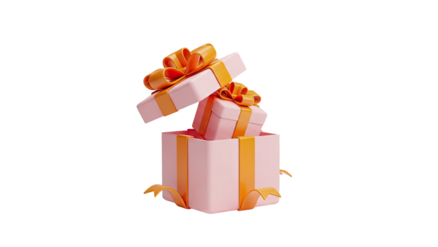 Vibrant 3d orange gift box with blue speckles on transparent background