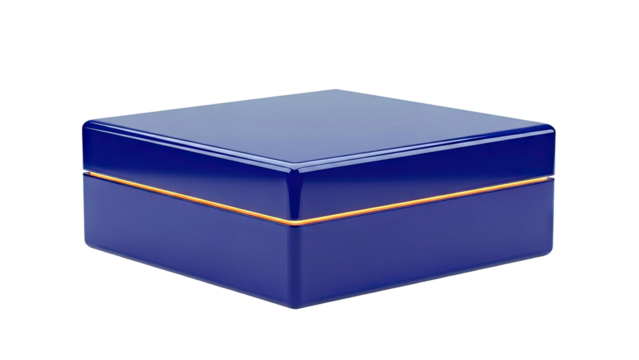 Navy blue gift box with orange ribbon present wrapping isolated on a transparent background