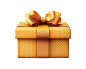 A decorative orange gift box with a ribbon, symbolizing celebration and giving.