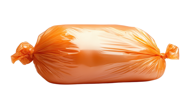 Bright orange gift bag with a satin ribbon bow isolated on transparent background