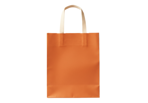 Orange gift box mockup with pink ribbon sits on transparent background. Perfect for holiday cards or marketing.