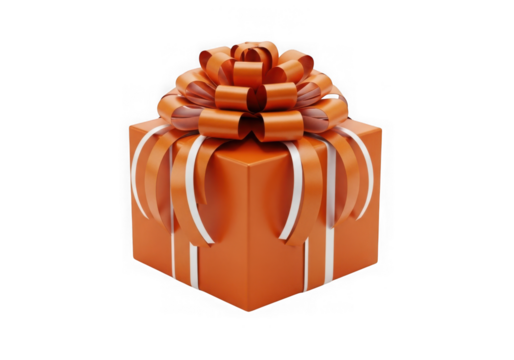 Orange Gift png Wrapped Present cutout Festive Box png Bright Package cutout Square Container png Happy Parcel cutout Celebration Offering png Birthday isolated transparent background image