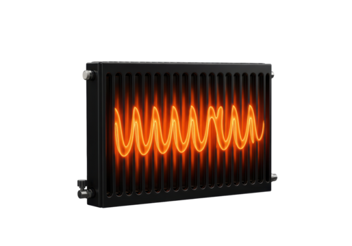 Isolated heat radiator with orange glow, heating system, energy efficiency concept