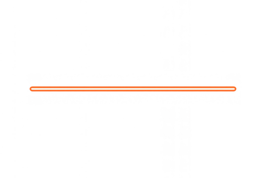 Orange glowing laser beam creating a straight light line, futuristic element with dynamic energy on transparent background