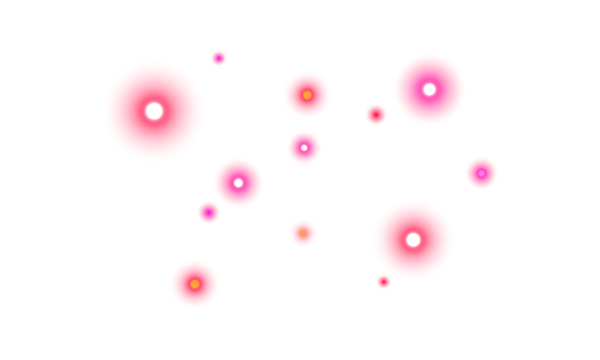Pink red and orange glowing light bokeh overlay with dreamy luminous particles sparkle effect on transparent background