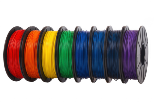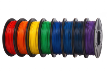 Colorful 3D printer filaments on spools 3D printing isolated on a transparent background
