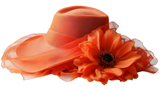 Isolated Wide Brimmed Orange Hat with Blue Ribbon