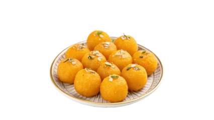 Delicious Besan Laddu on a Plate, Isolated on Transparent Background, Traditional Indian Sweet for Festive Celebrations