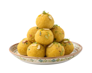 Delicious motichoor ladoo indian sweets dessert for festive celebration and traditional occasions food photography on transparent background