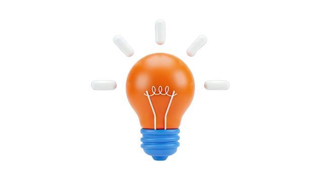 Stylized Orange Light Bulb with Blue Base and Rays