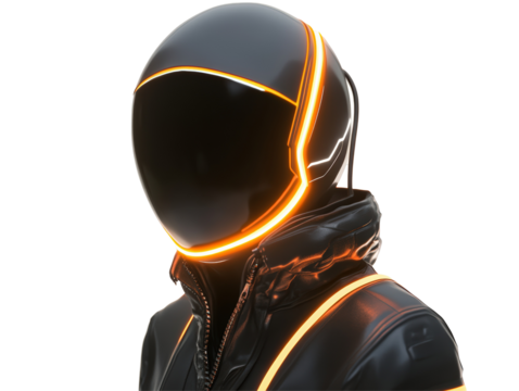 Isolated Futuristic Helmet with Orange Lights