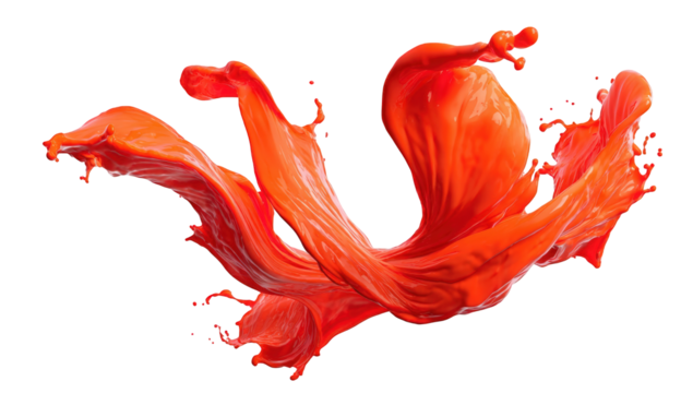 Dynamic orange liquid splash flowing smoothly against a clean white background.