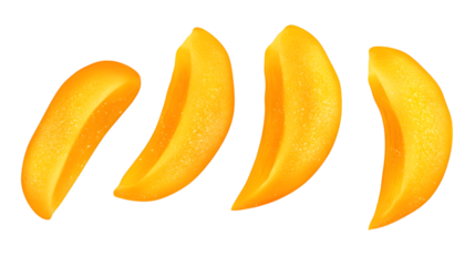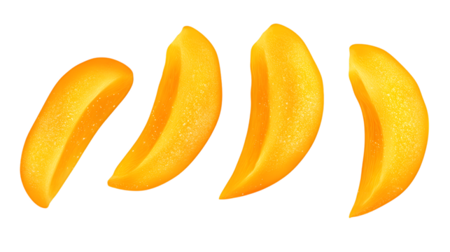 Two slices of vibrant orange mango fruit stacked on top of each other against a transparent background
