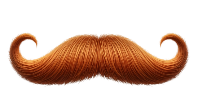 Cartoon-style orange mustache is glowing with curled tips, gradient shading, transparent background