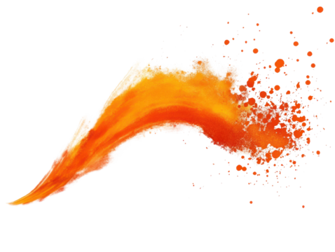 Vibrant orange paint stroke with splashes isolated on a transparent background brush stroke