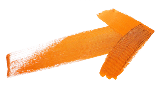 Vibrant orange paint stroke on a transparent background, perfect for creative design projects and artistic expressions.