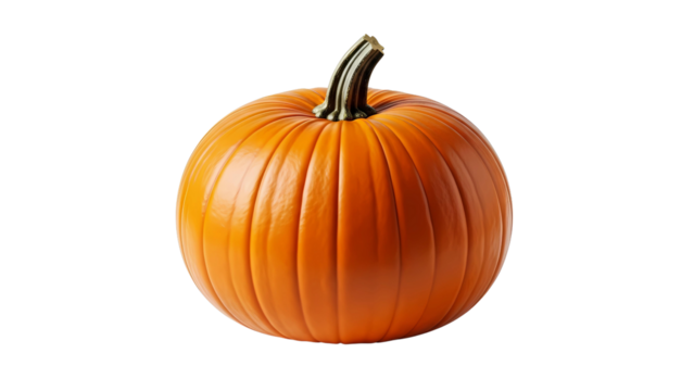 Bright orange pumpkin presenting vibrant autumn and halloween colors and harvest season theme, transparent background