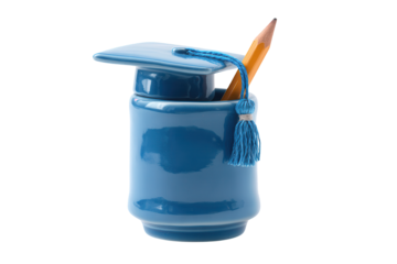 Blue Graduation Cap Jar with Orange Pencil ceramic isolated on a transparent background