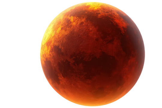 Fiery planet with lava flows isolated PNG, a celestial body with volcanic activity on transparent background, science fiction concept