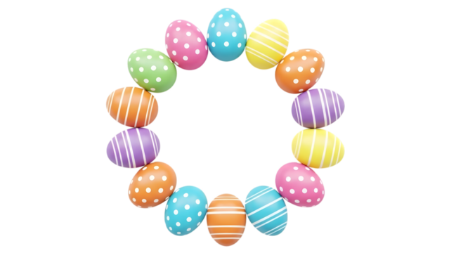 Five Colorful Decorated Easter Eggs in a Row