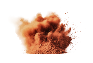 Dynamic explosion of vibrant orange powder in motion, cut out