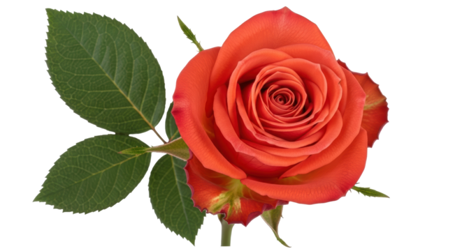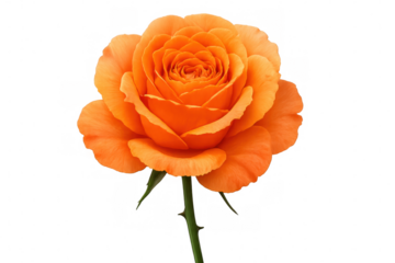 Vibrant orange rose bloom isolated on transparent background, conveying love, beauty, celebration, and romance