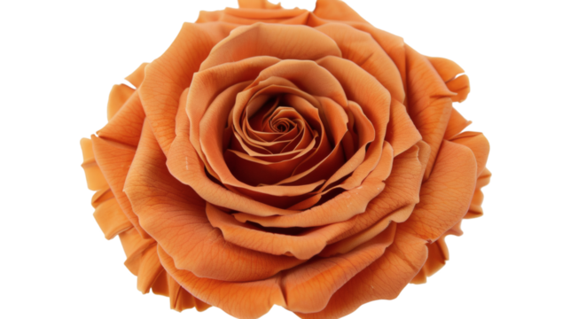 Vibrant orange rose in full bloom, isolated on a transparent png background, emphasizing its petals and intricate details.